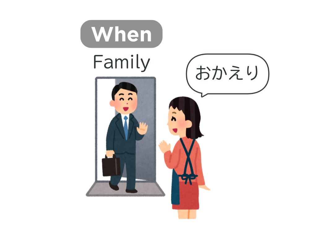 S:家族がうちに帰ったとき、「おかえり」と言います。