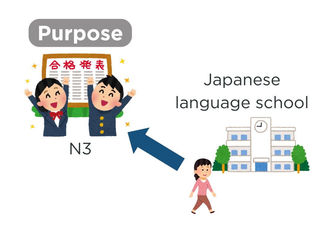 S:N3に合格するために、日本語学校に通います。
