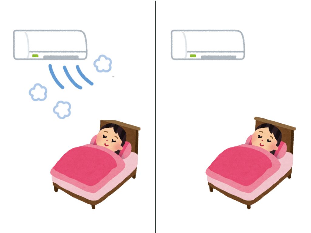 エアコンを消して寝ます。(エアコンを点けないで寝ます)