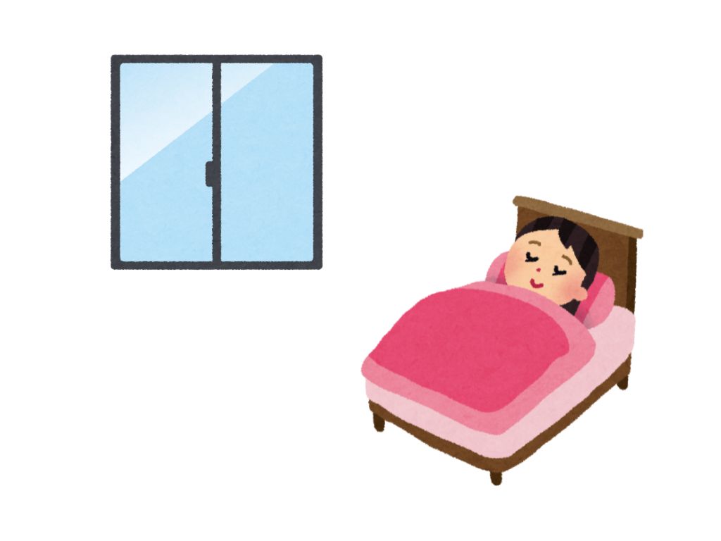 窓を開けて寝ます。窓を閉めないで寝ます。