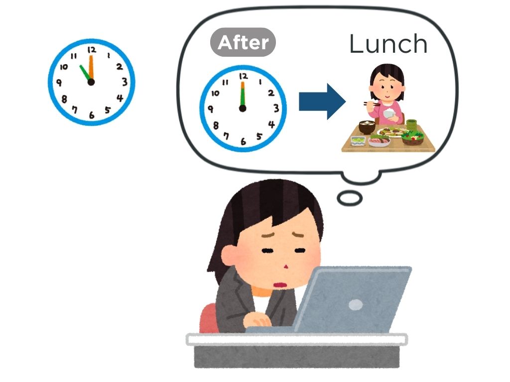 T:お腹が空きましたが、まだ11時ですから、昼ごはんを食べることができません。