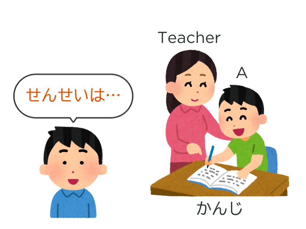 S:先生はAさんに漢字を教えてあげました。