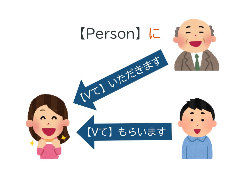 T:自分より上の人にしてもらうときは、「教えていただきます」と言います。「~ていただきます/もらいます」はいつも「(人)に」です。