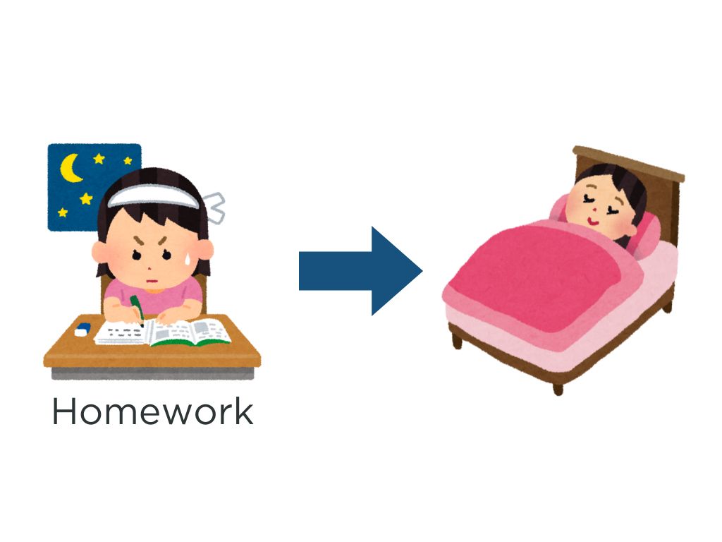 夜、うちに帰って、すぐ寝ますか?/晩御飯を食べますか?