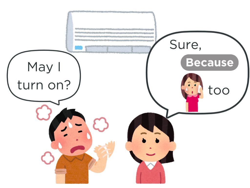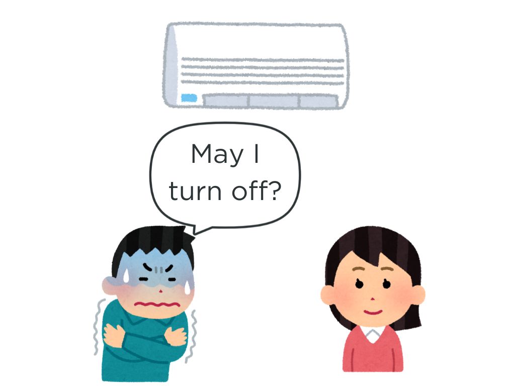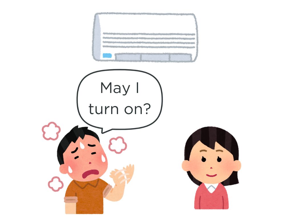 Bさんに「エアコンをつけます。OKですか」質問します。