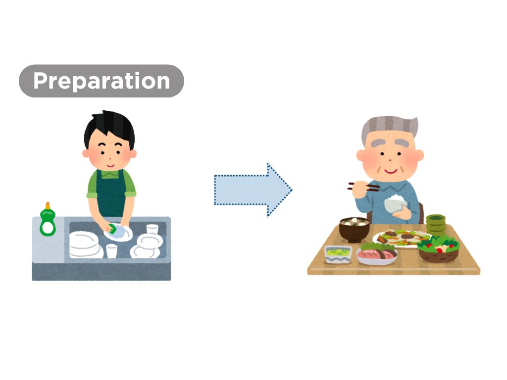 S:ごみを捨てておきます。/資料をしまっておきます。 etc.