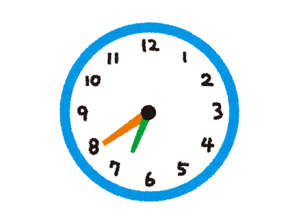 「〜時」と「〜分」は別々に導入します。「〜分」は覚えるのが難しいため、特に、5分、10分と5分単位ではしっかり言えるように練習します。(学生の進度を見て覚えられそうなら1分単位も覚えさせてもいいと思います)