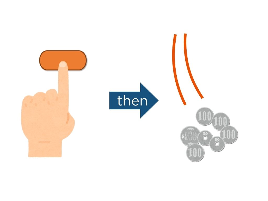 T:ボタンを押します。いつもおつりが出ます。おつりが出ます。