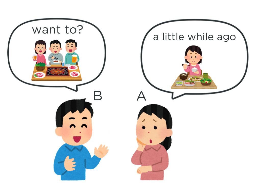 「ごはんを食べに行きませんか?」でも、Aさんは1時間前にごはんを食べて、お腹がいっぱいです。