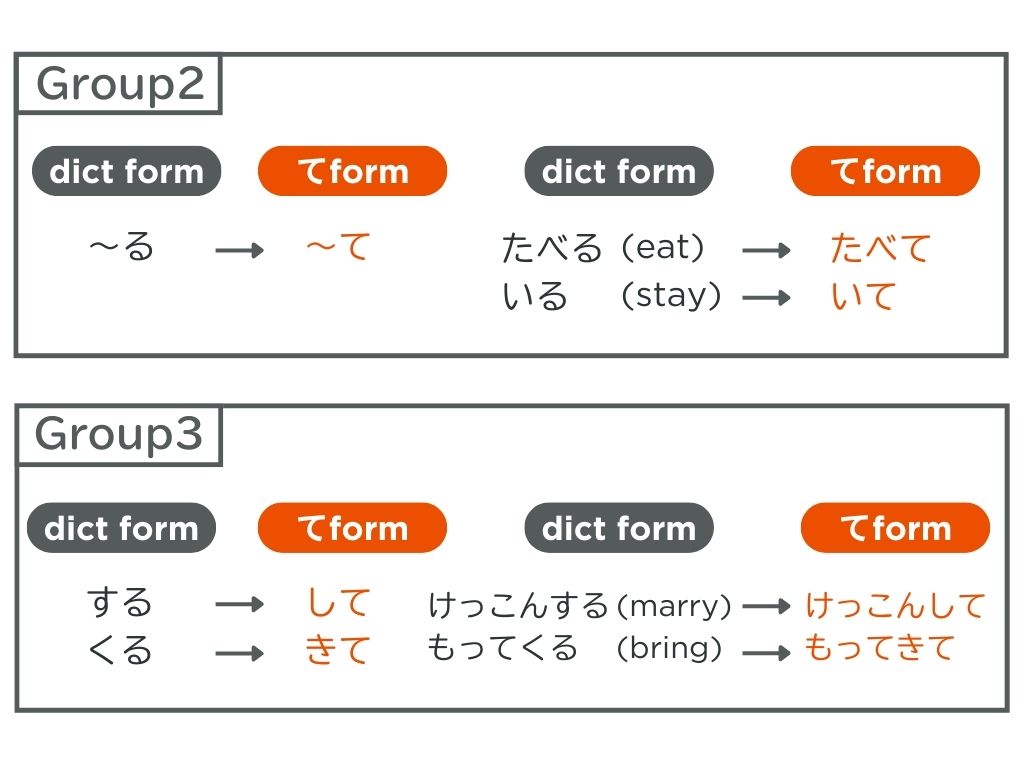 グループ2…食べる、見る、いる、寝る、起きる、つける、開ける、閉める etc.