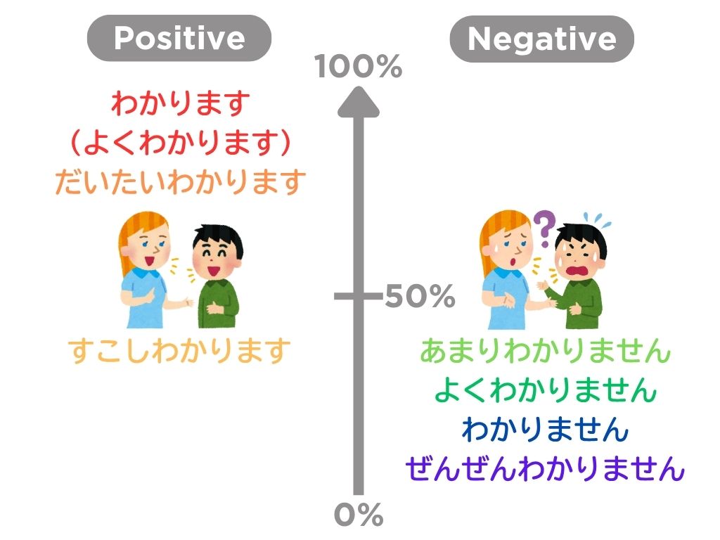 例えば母国語を「よくわかります」とは言わないと思うので、80%以上は「わかります」でいい、と教えています。
